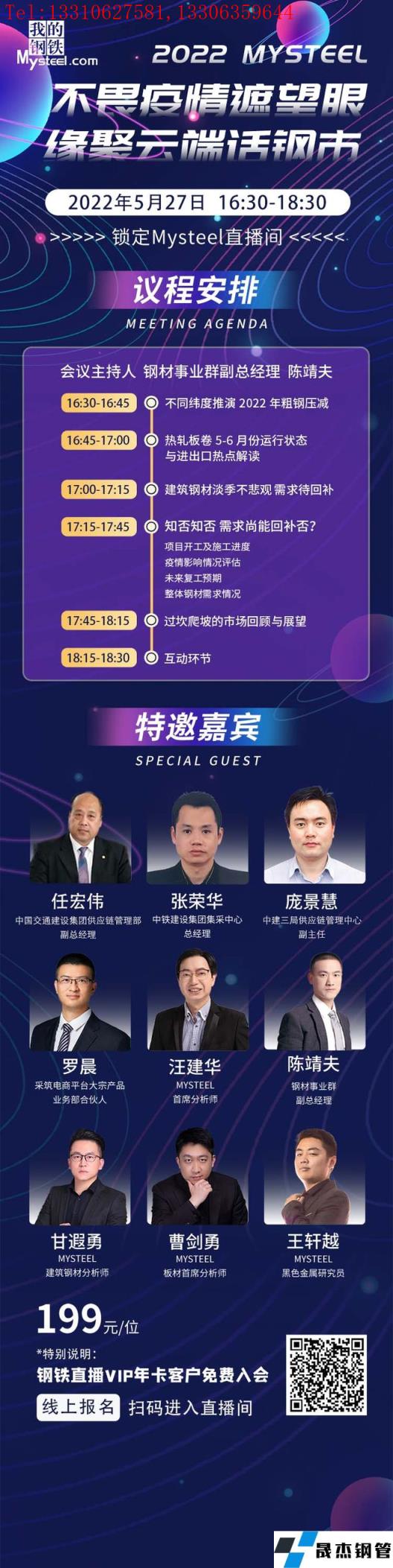 進入6月份,積極的宏觀政策與悲觀的市場預期之間繼續碰撞,伴隨著疫情逐漸接近尾聲,缺失的消費能否在6月份出現回補?發改委重提粗鋼壓減工作,如何推演未來粗鋼產量變化?宏觀強預期與成本塌陷的矛盾能否緩和?同時面臨著疫情反復、雨季汛期以及俄烏局勢等多種因素擾動及錯綜復雜的市場形勢,鋼鐵市場行情如何把握?5月27日下午16:30分9位行業大咖將做客直播間,聊一聊疫情對市場的影響、粗鋼產量及六月份鋼鐵市場面臨的機遇與挑戰。