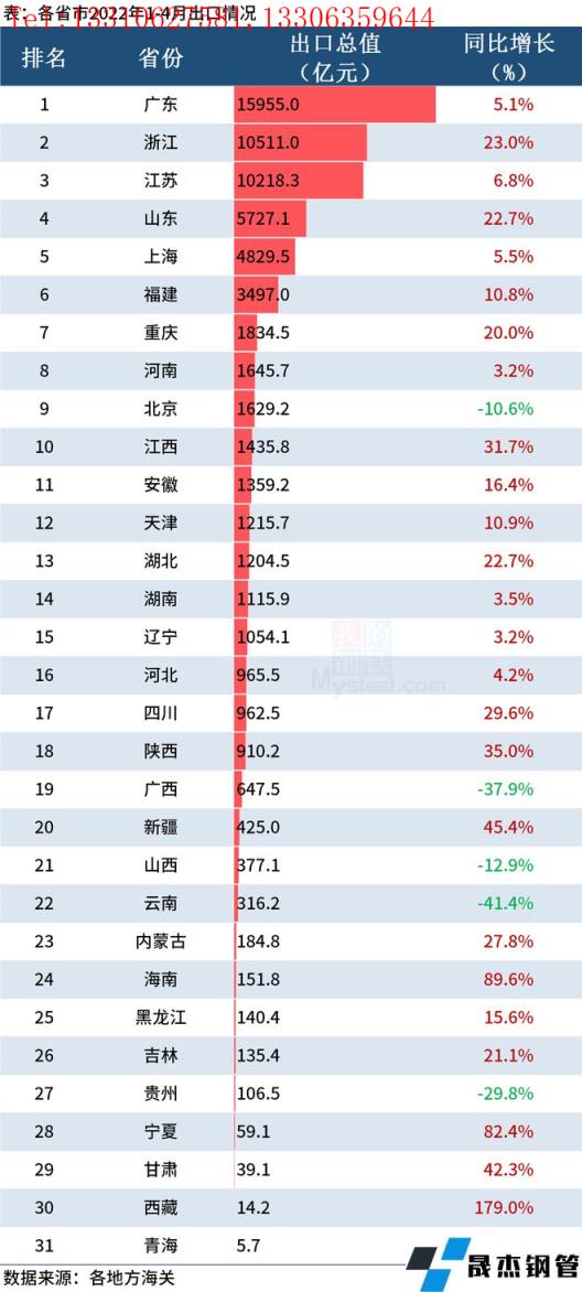 免責(zé)聲明:本網(wǎng)站(山東聊城晟杰無縫鋼管廠m.ahcom.com.cn)刊載的“前4月全國分省市外貿(mào)數(shù)據(jù)出爐,19地出口增速超10%”等均源于網(wǎng)絡(luò),版權(quán)歸原作者所有,且僅代表原作者觀點(diǎn),本文所載信息僅供參考。轉(zhuǎn)載僅為學(xué)習(xí)與交流之目的,如無意中侵犯您的合法權(quán)益,請及時聯(lián)系刪除。本網(wǎng)站刊登此篇文章并不意味著本站贊同其觀點(diǎn)或證實其內(nèi)容的真實性,我們不對其科學(xué)性、嚴(yán)肅性等作任何形式的保證。如果侵犯了您的版權(quán),請盡快聯(lián)系我們予以撤銷,謝謝合作!