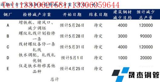 根據上圖甘青寧部分鋼企初步檢修減產計劃,5月份整個區域內建筑厚壁無縫鋼管產量計劃預計將減少約47萬噸,其中甘肅區域減少約24萬噸,寧夏區域減少約21萬噸,青海區域減少約在2萬噸。目前區域內鋼企減產主要集中于螺紋鋼品種,日均減少產量約在1.33萬噸,而盤螺線材相對減少較小,日均減少約在0.27萬噸。區域內鋼企大多從5月初開始檢修減產,預計維持一個月左右,主要檢修減產集中于甘肅與寧夏這兩個省份,這也是整個甘青寧區域供給壓力最大區域,資源多是外流。