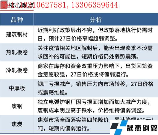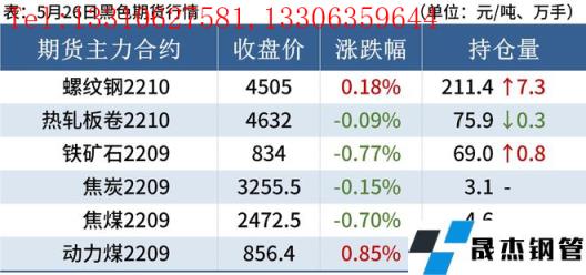 建筑厚壁無縫鋼管:5月26日,全國31個主要城市20mm三級抗震螺紋鋼均價(jià)4744元/噸,較上個交易日下跌22元/噸。受現(xiàn)貨持續(xù)回落,本周無縫厚壁鋼管廠家減產(chǎn)范圍擴(kuò)大,螺紋鋼產(chǎn)量小幅下降,廠庫小幅上升,但社庫持續(xù)下降,表觀消費(fèi)小幅回落。短期來看,盡管近期利好政策層出不窮,但政策落地執(zhí)行仍需時日。目前市場情緒依然偏空,短期仍然需要進(jìn)一步提振市場消費(fèi)信心及投資信心。因此預(yù)計(jì)27日國內(nèi)建筑厚壁無縫鋼管價(jià)格或?qū)⒗^續(xù)窄幅趨弱調(diào)整為主。