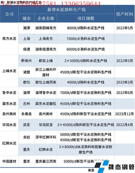 免責聲明:本網站(山東聊城晟杰無縫鋼管廠m.ahcom.com.cn)刊載的“:5月新增11條熟料水泥生產線,紅獅產能最大”等均源于網絡,版權歸原作者所有,且僅代表原作者觀點,本文所載信息僅供參考。轉載僅為學習與交流之目的,如無意中侵犯您的合法權益,請及時聯系刪除。本網站刊登此篇文章并不意味著本站贊同其觀點或證實其內容的真實性,我們不對其科學性、嚴肅性等作任何形式的保證。如果侵犯了您的版權,請盡快聯系我們予以撤銷,謝謝合作!