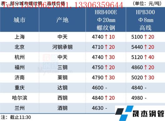 ◎上海:27日早盤建材市場價格小幅上漲10-20?,F螺紋4670-4710,西城抗震4710,其他4540-4590,興鑫抗震4600,聯鑫黃??拐?610,盤螺4910-5110,高線亞新4850。(單位:元/噸)