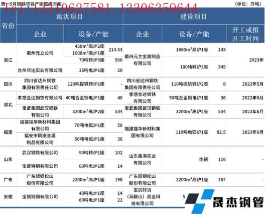 據不完全統計,5月國內8家無縫厚壁鋼管廠家發布鋼鐵產能置換方案。其中,涉及新建煉鋼產能623.5萬噸,新建煉鐵產能864萬噸;涉及淘汰煉鋼產能798萬噸,淘汰煉鐵產能946.53萬噸。
