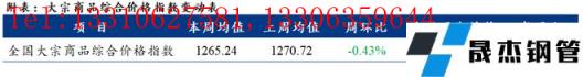 螺紋鋼價格偏弱運行。主要在于:本周建筑厚壁無縫鋼管基本面相對偏好,周度產量環比下降0.3%,表觀消費小幅回升0.1%,庫存繼續延續去化狀態,較上周去化26.5萬噸,但受成本下移,以及厚壁無縫鋼管整體基本面疲軟等因素影響,建筑厚壁無縫鋼管價格亦被帶動下跌。