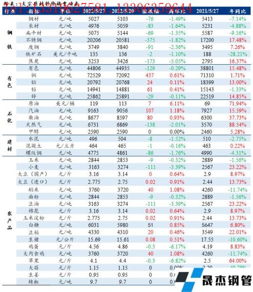 免責聲明:本網站(山東聊城晟杰無縫鋼管廠m.ahcom.com.cn)刊載的“周報:大宗工業原材料、能源及農產品價格周報(5.23-5.27)”等均源于網絡,版權歸原作者所有,且僅代表原作者觀點,本文所載信息僅供參考。轉載僅為學習與交流之目的,如無意中侵犯您的合法權益,請及時聯系刪除。本網站刊登此篇文章并不意味著本站贊同其觀點或證實其內容的真實性,我們不對其科學性、嚴肅性等作任何形式的保證。如果侵犯了您的版權,請盡快聯系我們予以撤銷,謝謝合作!