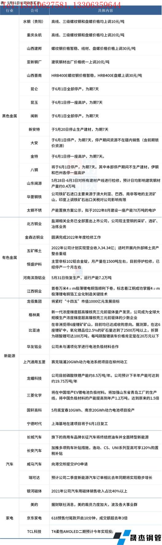 寧德時(shí)代上海基地在建項(xiàng)目將于6月1日復(fù)工;五礦稀土2022年公司計(jì)劃實(shí)現(xiàn)營業(yè)收入34.34億;欣旺達(dá)擬投入23億元建設(shè)年產(chǎn)3.1億只高性能圓柱鋰離子電池項(xiàng)目;龍佰集團(tuán)將緊盯“十四五”市值1000億元發(fā)展目標(biāo)。具體情況如下: