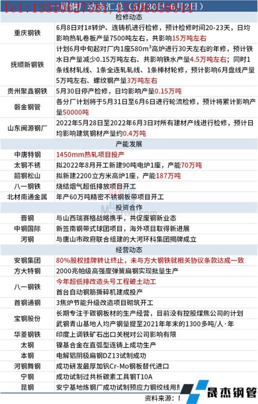 據不完全統計,本周(5月30日-6月2日)有5家無縫厚壁鋼管廠家發布檢修計劃,具體如下:
