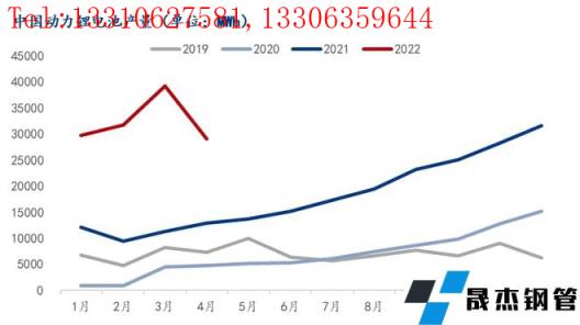 2022年前4個月中國動力鋰電池產量為13GWh,同比增速超過180%,其中3月再度創歷史新高,動力電池類鋰電銅箔需求量接近10萬噸。
