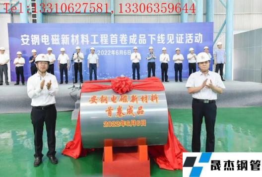 省發改委二級巡視員周李成、集團公司總經理劉潤生、市委常委、市委秘書長董良鴻、市委常委、常務副市長、政法委書記王樸、集團公司領導張懷賓、谷少黨、張智勇、程官江等出席安鋼電磁新材料工程首卷成品下線見證活動。