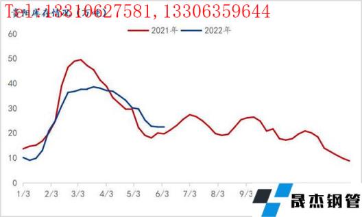 5月中下旬以來,貴州地區進入雨季,強降水天氣頻發,平均降水量較常年同期偏多18.2%,江河來水量較多年平均偏多25%。雨季來臨,下游施工受限,運輸受阻,貴陽主流庫房開單量下滑明顯,5月份貴陽市場主流庫房日均開單量6680噸,較4月份日均開單量減少967噸,降幅達12.65%,疊加高考停工影響,今日貴陽主流庫房開單量僅4500噸。較2021年5月份日均開單量減少4546噸,降幅達40.49%,僅達去年六成。雨季需求受限,貴陽市場去庫速度受到影響,截至6月5日,貴陽主流庫房建筑厚壁無縫鋼管庫存22.6萬噸,較上周減少0.37萬噸,降幅1.61%,較去年同期高出2.86萬噸,增幅達14.48%。綜合來看,雨季來臨,貴陽市場建筑厚壁無縫鋼管需求明顯下滑,去庫速度放緩。