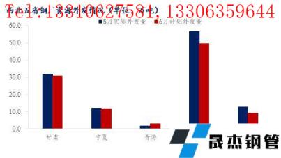 從具體投放量來看,西北地區本區域建筑厚壁無縫鋼管無縫厚壁鋼管廠家5月份實際投放量約在161.7萬噸,相比上月增加37.5萬噸。6月份西北區域內建筑厚壁無縫鋼管無縫厚壁鋼管廠家總計劃投放量約在165.4萬噸,占總產量約58.9%。其中其他省份加大了對陜西投放量,相比5月增加了約7萬噸。而新疆主要是本省自己無縫厚壁鋼管廠家投放,由于鋼企自身減產較多,6月計劃投放量約在59萬噸,相比5月減少了3萬噸。甘肅、寧夏以及青海6月計劃投放量與上月相比無太大變化。