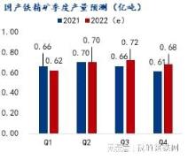 綜合以上分析,2022年,維持中國(guó)生鐵產(chǎn)量同比減少1400萬(wàn)噸,國(guó)產(chǎn)鐵精礦產(chǎn)量同比增加1000萬(wàn)噸預(yù)期不變,鐵礦石進(jìn)口量同比減量擴(kuò)大至1920萬(wàn)噸。