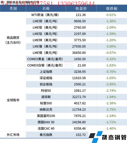 免責(zé)聲明:本網(wǎng)站(山東聊城晟杰無(wú)縫鋼管廠m.ahcom.com.cn)刊載的“2022年06月10日早讀:全球大宗商品價(jià)格普跌,電爐無(wú)縫鋼管廠家虧損超百元”等均源于網(wǎng)絡(luò),版權(quán)歸原作者所有,且僅代表原作者觀點(diǎn),本文所載信息僅供參考。轉(zhuǎn)載僅為學(xué)習(xí)與交流之目的,如無(wú)意中侵犯您的合法權(quán)益,請(qǐng)及時(shí)聯(lián)系刪除。本網(wǎng)站刊登此篇文章并不意味著本站贊同其觀點(diǎn)或證實(shí)其內(nèi)容的真實(shí)性,我們不對(duì)其科學(xué)性、嚴(yán)肅性等作任何形式的保證。如果侵犯了您的版權(quán),請(qǐng)盡快聯(lián)系我們予以撤銷,謝謝合作!