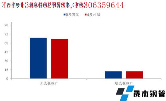 1、6月份廣西地區建筑材省內長流程無縫厚壁鋼管廠家計劃供應量共計66.8萬噸,環比下降2.12萬噸,降幅為3.08%;短流程無縫厚壁鋼管廠家到貨量為12.4萬噸,環比增加0.2萬噸,增幅為1.64%。