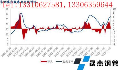 解析:本周京津冀主要建筑厚壁無縫鋼管市場螺紋庫存增加8.07萬噸,盤線庫存增加3.42萬噸,其中北京市場螺紋庫存增加5.48萬噸,盤線庫存增加1.09萬噸。本周京津冀無縫厚壁鋼管廠家產(chǎn)量39.07萬噸,周環(huán)比增加4.2%,無縫厚壁鋼管廠家暫無產(chǎn)線檢修、復產(chǎn),主要是鐵水的傾斜變化導致。外來無縫厚壁鋼管廠家資源來看,凌鋼、西林、新?lián)岬葘┙蚣桨l(fā)貨較好,加之需求端方面,北京、天津市場受疫情沖擊,需求表現(xiàn)偏弱,因此在供應尚可、需求表現(xiàn)不佳的情況下,市場庫存持續(xù)增加。從品種上看,本周線盤的庫存占比繼續(xù)上升,為17.78%。各城市來看,目前邯鄲、承德市場盤線庫存偏高,在34%以上;其他市場盤線庫存占比基本位于合理區(qū)間。因京津冀建材市場盤螺價格居于高位,外來無縫厚壁鋼管廠家資源向京津冀發(fā)貨積極性較高,且與京津冀區(qū)域的河鋼售價相差200元/噸左右,預計短期河鋼盤螺-螺紋鋼價差或有所收窄。