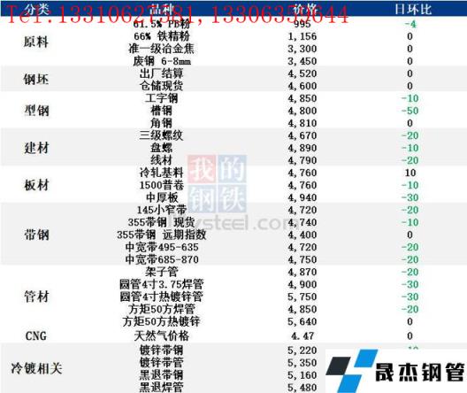 表:6月10日唐山鋼市主要品種價格一覽(單位:元/噸)
