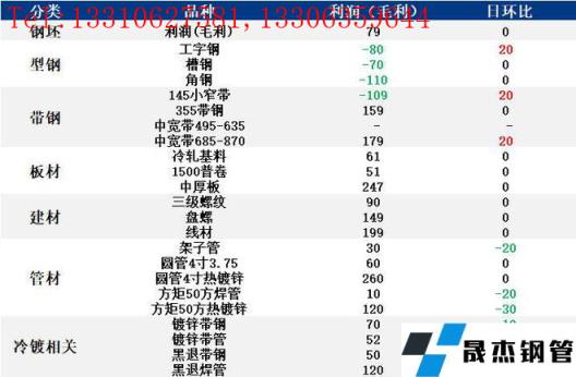 表:6月10日唐山鋼市主要品種利潤一覽(單位:元/噸)