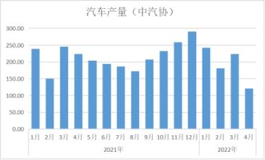 根據(jù)中國(guó)汽車工業(yè)協(xié)會(huì)統(tǒng)計(jì)數(shù)據(jù)顯示,2022年4月份,汽車產(chǎn)銷分別完成120.5萬(wàn)輛和118.1萬(wàn)輛,環(huán)比分別下降46.2%和47.1%,同比分別下降46.1%和47.6%。1-4月,汽車產(chǎn)銷分別完成769.0萬(wàn)輛和769.1萬(wàn)輛,同比分別下降10.5%和12.1%。