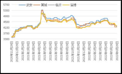 據(jù)云商平臺監(jiān)測數(shù)據(jù)顯示,截至6月30日,鑄造生鐵天津地區(qū)報價4250元,較月初跌150元;武安地區(qū)報價4150元,較月初跌220元;翼城地區(qū)報價4150元,較月初跌150元;上海地區(qū)報價4500元,較月初跌150元;臨沂地區(qū)報價4200元,較月初跌200元(詳見圖3)。