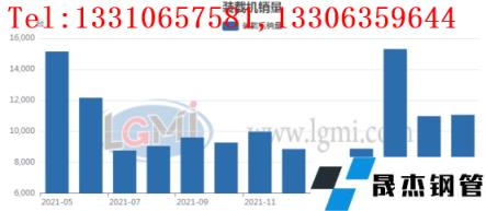 5月份國內(nèi)裝載機(jī)銷量為11059臺(tái),環(huán)比4月份增加84臺(tái)。同比21年同期減少約4086臺(tái)。