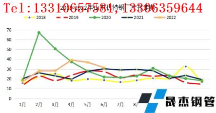截至6月29日,山東地區(qū)9家無縫鋼管廠家優(yōu)特鋼總庫存31.41萬噸,較上月增加1.89萬噸,增幅6.63%。