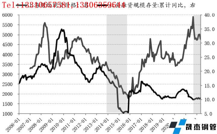 宏觀環(huán)境對以螺紋鋼為代表的黑色商品同樣有著重要影響。本文選取社會融資這一指標(biāo),用以表征宏觀環(huán)境的變化。筆者通過統(tǒng)計分析發(fā)現(xiàn),過去15年,社融累計同比和螺紋鋼現(xiàn)貨價格之間的相關(guān)系數(shù)達到0.4,呈中度正相關(guān)特征。通常情況下,社融周期拐點領(lǐng)先于螺紋鋼價格周期拐點。