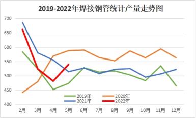 圖1 2019-2022年國內焊接無縫鋼管產量示意圖