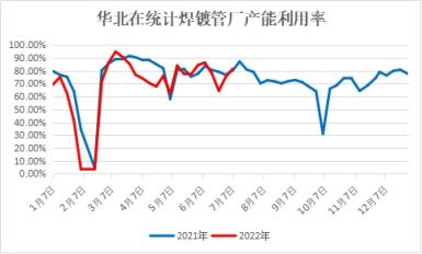 圖2 在統計焊接無縫鋼管管廠產能利用率走勢