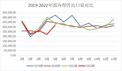 圖4 2019-2022年國內焊管出口量對比