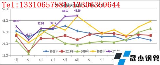 (1)二季度部分海外地區不銹鋼資源供不應求,即使加上反傾銷稅后,中國不銹鋼出口仍具有一定的價格優勢。即使考慮海運周期相對較長的情況下,中國出口的不銹鋼交貨期仍具有優勢。 (2)俄烏問題持續發酵,致使歐洲能源、電費、各類輔料價格暴漲,不銹鋼生產成本大幅增加,中國不銹鋼出口具有一定的價格優勢。 (3)最新歐盟和印度兩大海外市場產業政策的調整使得中國不銹鋼出口價格優勢顯現。 ?2022年2月1日,印度取消對不銹鋼扁平材產品的某些反傾銷和反補貼稅。 ?2022年3月16日起,歐盟將對原產于印度的不銹鋼冷軋板征收4.3%-7.5% 的反補貼稅,對原產于印度尼西亞的不銹鋼冷軋板征收0-21.4%的反補貼稅。歐盟對原產于印度的不銹鋼冷軋板征收10%-35.3%的反傾銷稅,對原產于印度尼西亞的不銹鋼冷軋板征收9.3%-20.2%的反傾銷稅。 ?印度財政部:2022年5月22日起增加部分不銹鋼產品出口關稅。其中,稅則號7219項下(寬度為600mm及以上不銹鋼扁平材制品)、7222及7227項下(棒材及合金鋼)出口關稅由0%提高至15%。關稅調整將于5月22日開始生效。 3、2022年三季度中國不銹鋼出口情況展望 當前歐美通脹加劇,海外不銹鋼需求也逐步趨弱,海外不銹鋼分銷商和服務中心的庫存增加。目前,海外部分國家已進入夏休假期,不銹鋼實際需求將進一步回落。另外,三季度印尼不銹鋼存量產能將增產,新增不銹鋼產能將放量,或將對中國不銹鋼出口產生一定的影響。預計2022年三季度中國不銹鋼出口環比大幅增長的可能性較小,出口熱度將有所降溫,有可能出現環比回落的態勢。