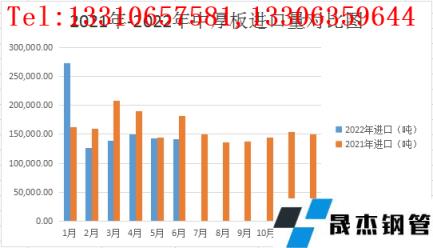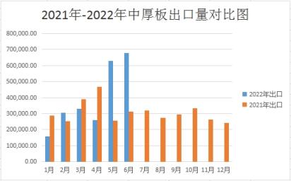 圖6 中厚板產(chǎn)品2021-2022年度進(jìn)口量對(duì)比圖